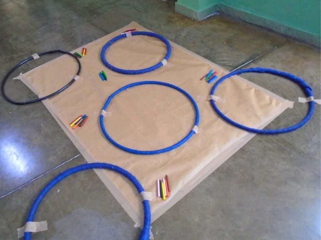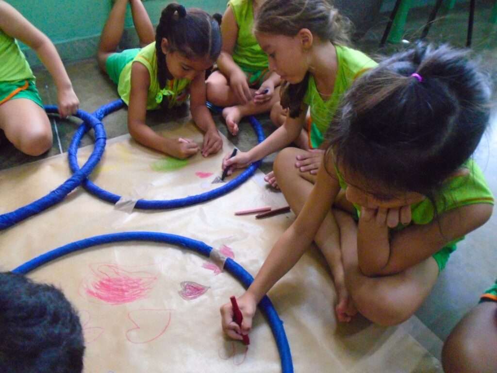 Etapa II B explora noções espaciais em atividade criativa com bambolês