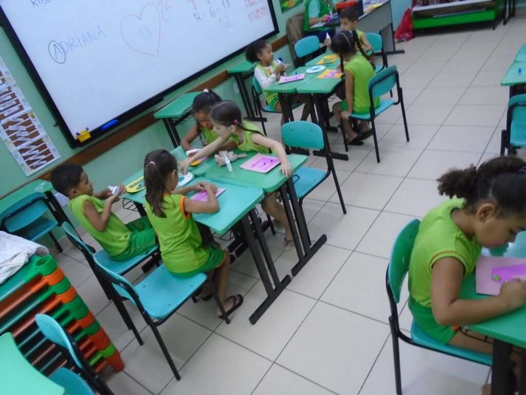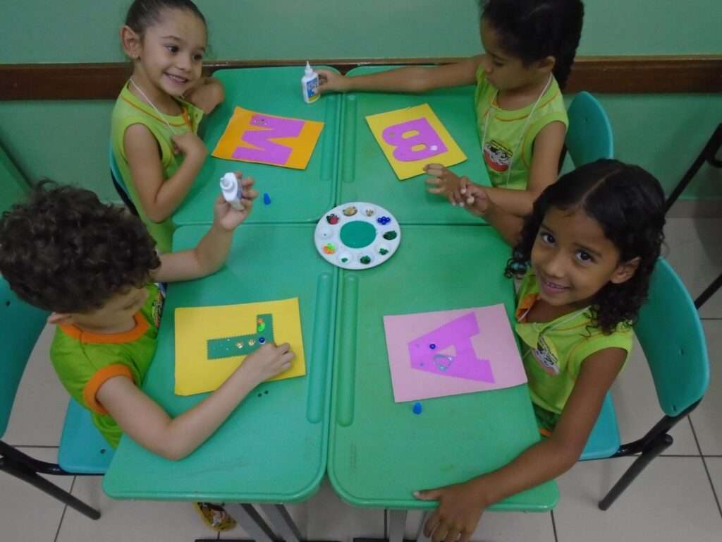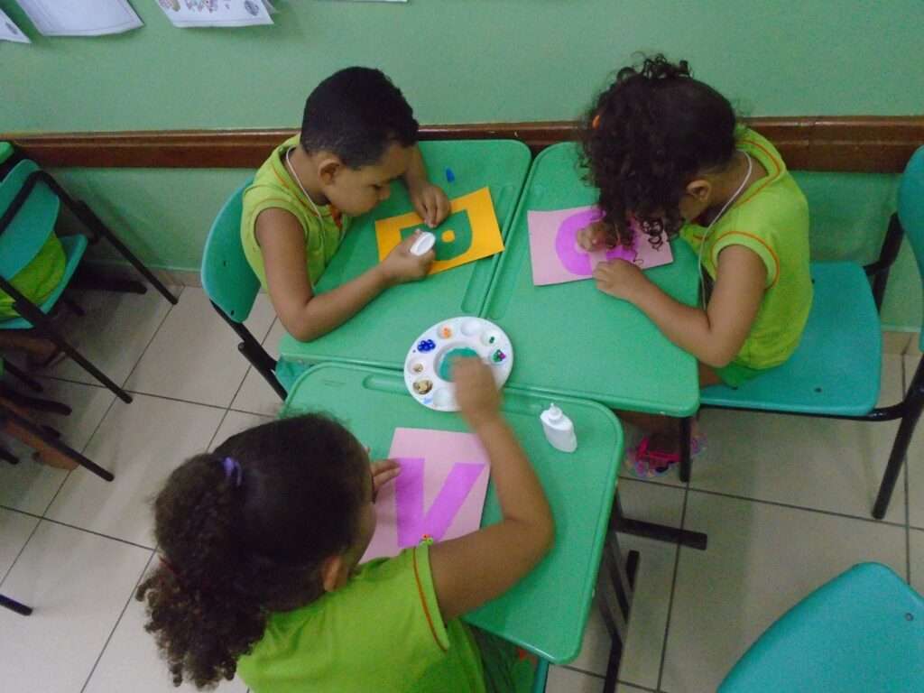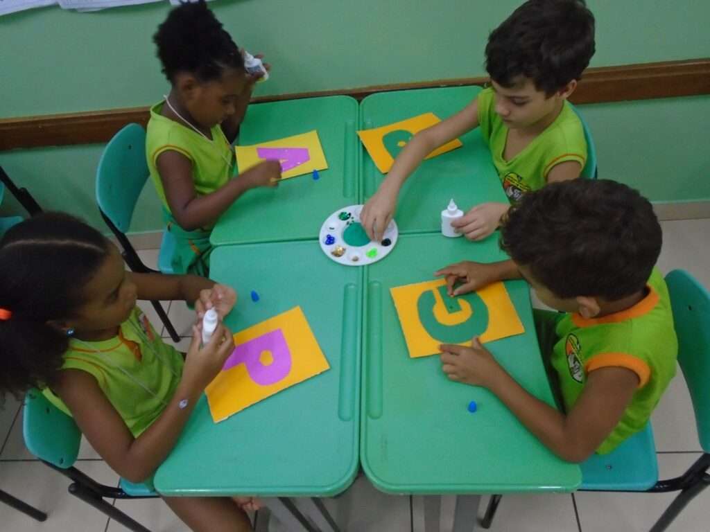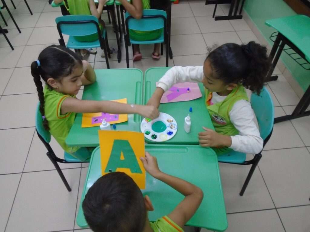 Durante a vivência, as crianças foram incentivadas a identificar sua letra e compartilhá-la com os colegas, promovendo interação social, autoestima e autonomia. A proposta favoreceu também o desenvolvimento da coordenação motora e da expressão artística.