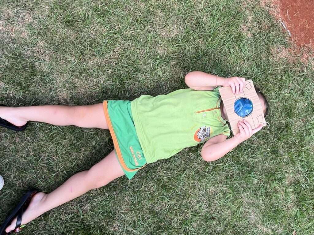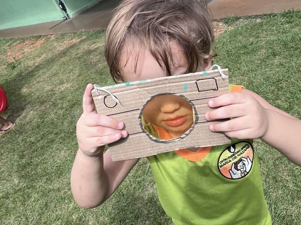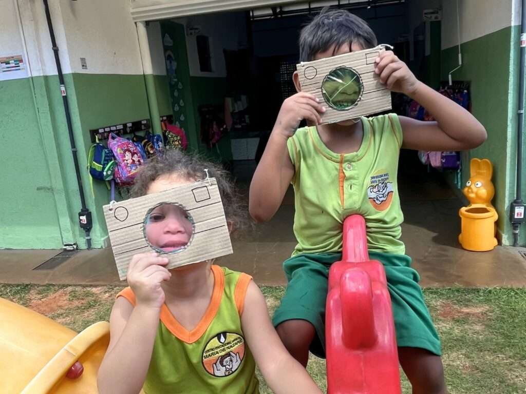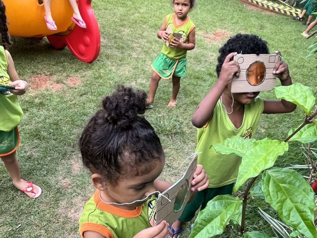 A turma participou com entusiasmo, demonstrando curiosidade e encantamento ao observar a natureza sob novas perspectivas.