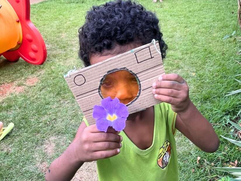 Ao explorar o ambiente de forma livre e investigativa, as crianças puderam levantar hipóteses, compartilhar observações com os colegas e expressar suas descobertas, fortalecendo a interação e o aprendizado coletivo.